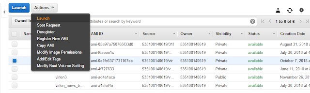 3. Buka daftar AMI. Pilih AMI dan kemudian klik Launch.